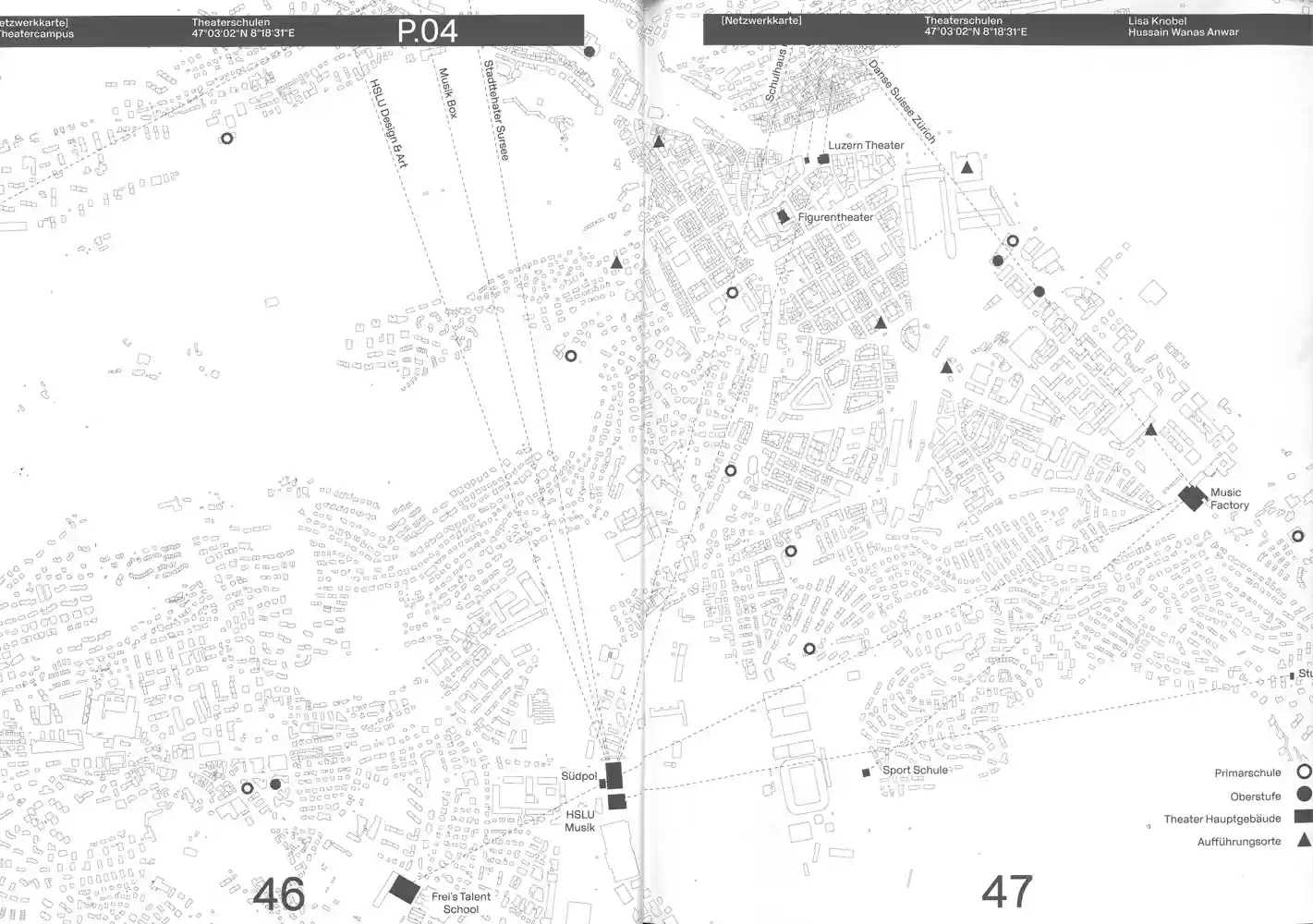 Durch das Erstellen von ethnografischen Karten und das Führen von Interviews wurden die Beziehungen der unterschiedlichen Institutionen sowie deren Akteur:innen und Interessensvertreter:innen (z. B. Mäzen:innen, Leiter:innen, Politiker:innen usw.) aufgezeigt. Rasch breitete sich ausgehend vom Luzerner Theater an der Reuss ein vielschichtiges Fadenspiel in und um die Stadt Luzern aus. Die in diesem Fadenspiel sichtbar gemachten Beziehungen veränderten nicht nur die Wahrnehmung des Luzerner Theaters als insuläre Kulturinstitution an südlichen Reussufer nahe der Altstadt. Wie verwandelt offenbarte sich plötzlich auch der Luzerner Stadtkörper nicht mehr als etwas erstarrtes und endgültiges sondern als eine dynamische Morphologie – von politischen, sozialen und räumlichen Umschichtungen geprägt.
