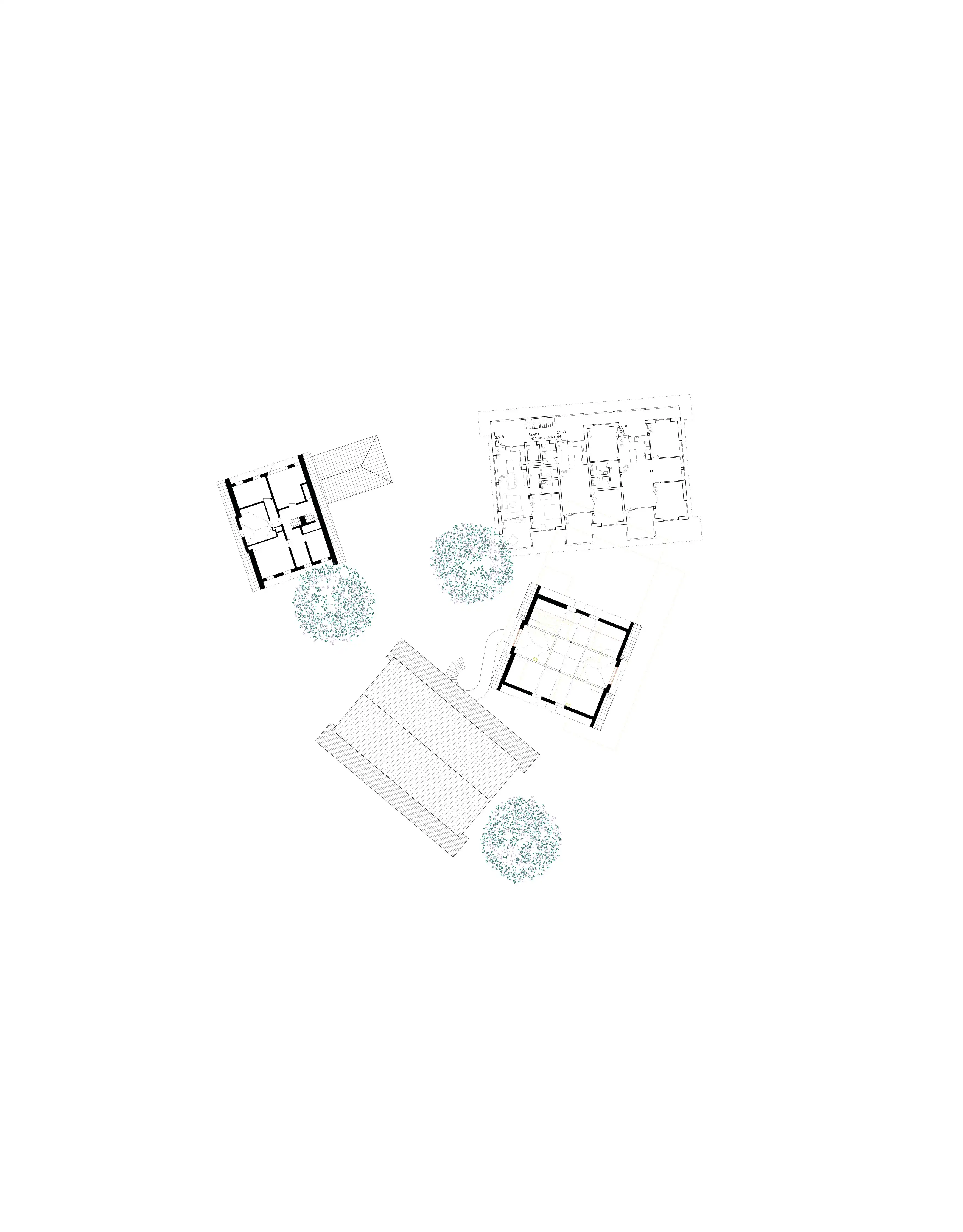 Die Proportionen und Materialien der Neubauten erzeugen situative Dialoge mit dem Bestand. So entsteht respektvoll eine rhythmische Kontinuität, die Alt und Neu nicht angleicht, sondern gestalterische Beziehung setzt.
