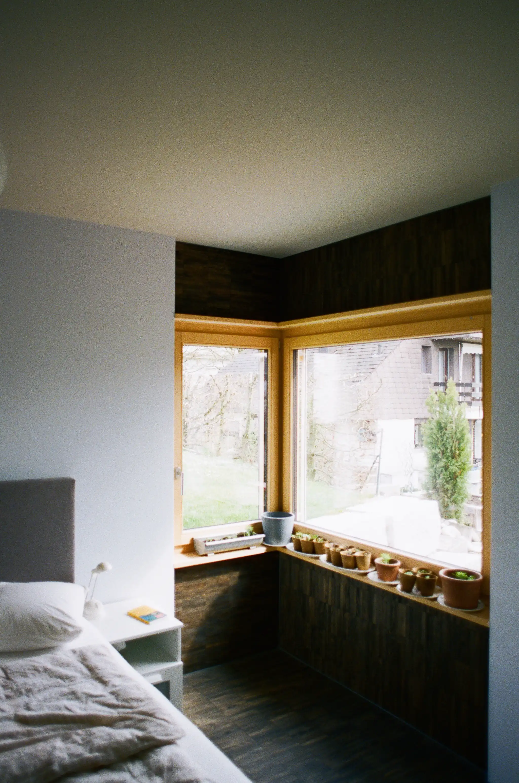 Die Gestalt des Neubaus wird durch die präzise Gliederung der Sichtbetonwände bestimmt. Dem schweren Beton trotzend verleiht sie dem Haus eine leichte, gastfreundschafliche Anmut.