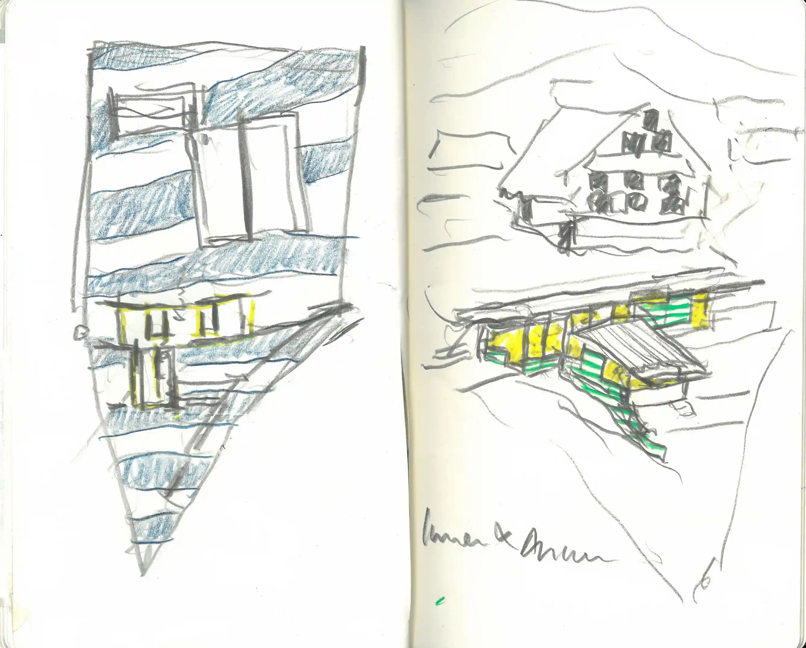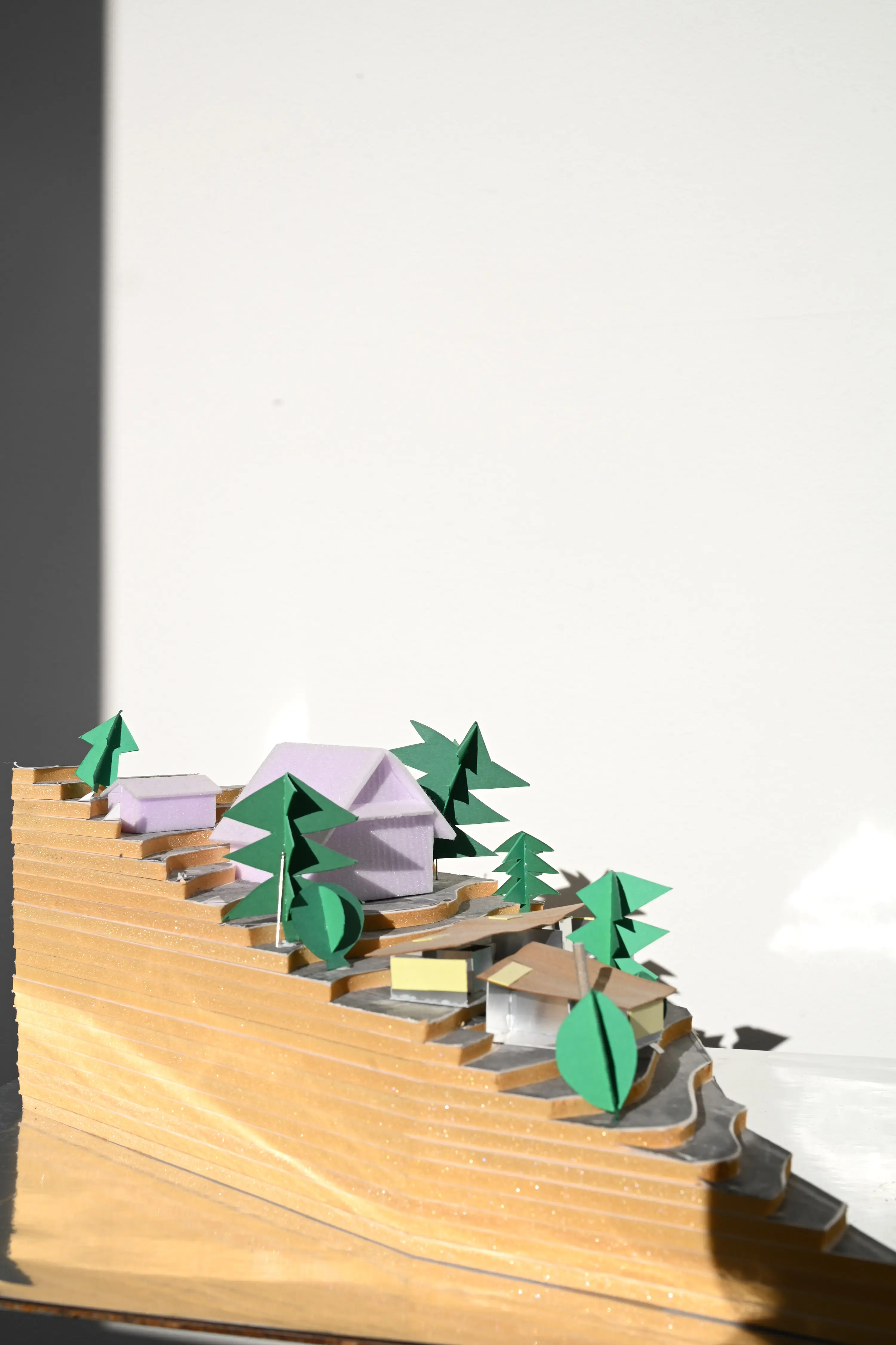 Am Südhang der Rigi wird ein ehemaliges Bauernhaus sanft saniert und durch ein dem Hang folgenden Wohnhaus mit zwei Wohnungen ergänzt.